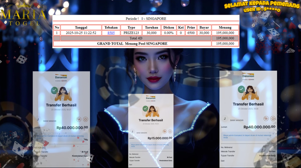 Masih ragu kemenangan anda tidak di bayarkan? segera bergabung bersama kami memberikan bukti bukan hanya sekedar janji! dengan hanya deposit Rp.10.000 anda dapat jackpot hingga ratusan juta rupiah! Kenapa harus di Mariatogel ? Karena Mariatogel sudah terpercaya di Asia Tenggara yang menawarkan berbagai puluhan pasaran Togel, SLOT dan Live Games yang bisa dimainkan. Hanya dengan modal Rp.10.000 saja, Anda sudah bisa bergabung dan bermain di situs Mariatogel dan sudah bisa memenangkan hadiah hingga ratusan juta Rupiah. Tidak percaya ? silahkan di cek bukti hadiah kemenangan member Mariatogel yang sudah dibayarkan kepada pemenang. Dan melakukan penarikan sebesar Rp. 95,000,000 ,- yang telah di transfer LUNAS,- Mariatogel sudah terkenal dimana-mana dan memiliki Jutaan member aktif serta memiliki prinsip fairplay. Berapapun kemenangan Anda akan kami bayarkan. berikut bukti yang sudah kami transferkan kepada pemenang
