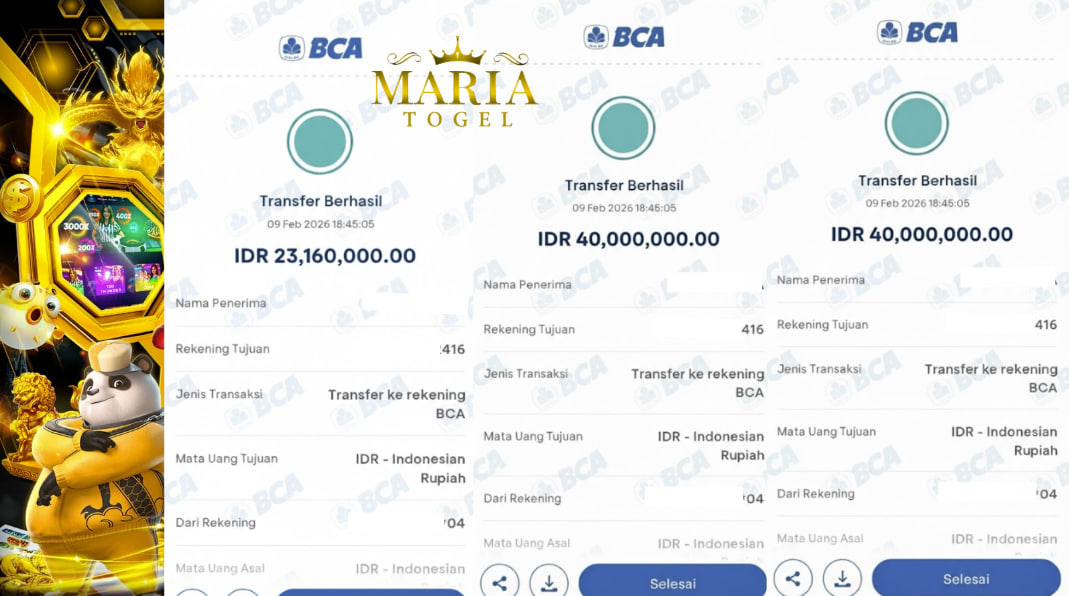 Masih ragu kemenangan anda tidak di bayarkan? segera bergabung bersama kami MariaTogel. kami memberikan bukti bukan hanya sekedar janji! dengan hanya Minimal deposit Rp.10.000 anda dapat jackpot hingga ratusan juta rupiah! Kenapa harus di MariaTogel? Karena MariaTogel sudah terpercaya di Asia Tenggara yang menawarkan berbagai puluhan pasaran Togel, SLOT dan Live Games yang bisa dimainkan. Hanya dengan modal Rp.10.000 saja, Anda sudah bisa bergabung dan bermain di situs MariaTogel dan sudah bisa memenangkan hadiah hingga ratusan juta Rupiah. Tidak percaya ? silahkan di cek bukti hadiah kemenangan member MariaTogel yang sudah dibayarkan kepada pemenang. Dan melakukan penarikan sebesar Rp. 103,160,000 ,- yang telah di transfer LUNAS,- MariaTogel sudah terkenal dimana-mana dan memiliki Jutaan member aktif serta memiliki prinsip fairplay. Berapapun kemenangan Anda akan kami bayarkan. Berikut bukti yang sudah kami transferkan kepada pemenang